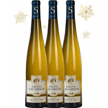 Ce coffret inédit réunit les plus beaux Rieslings du Domaine Schlumberger, issus de nos Grands Crus les plus prestigieux : Saering, Kessler et Kitterlé.